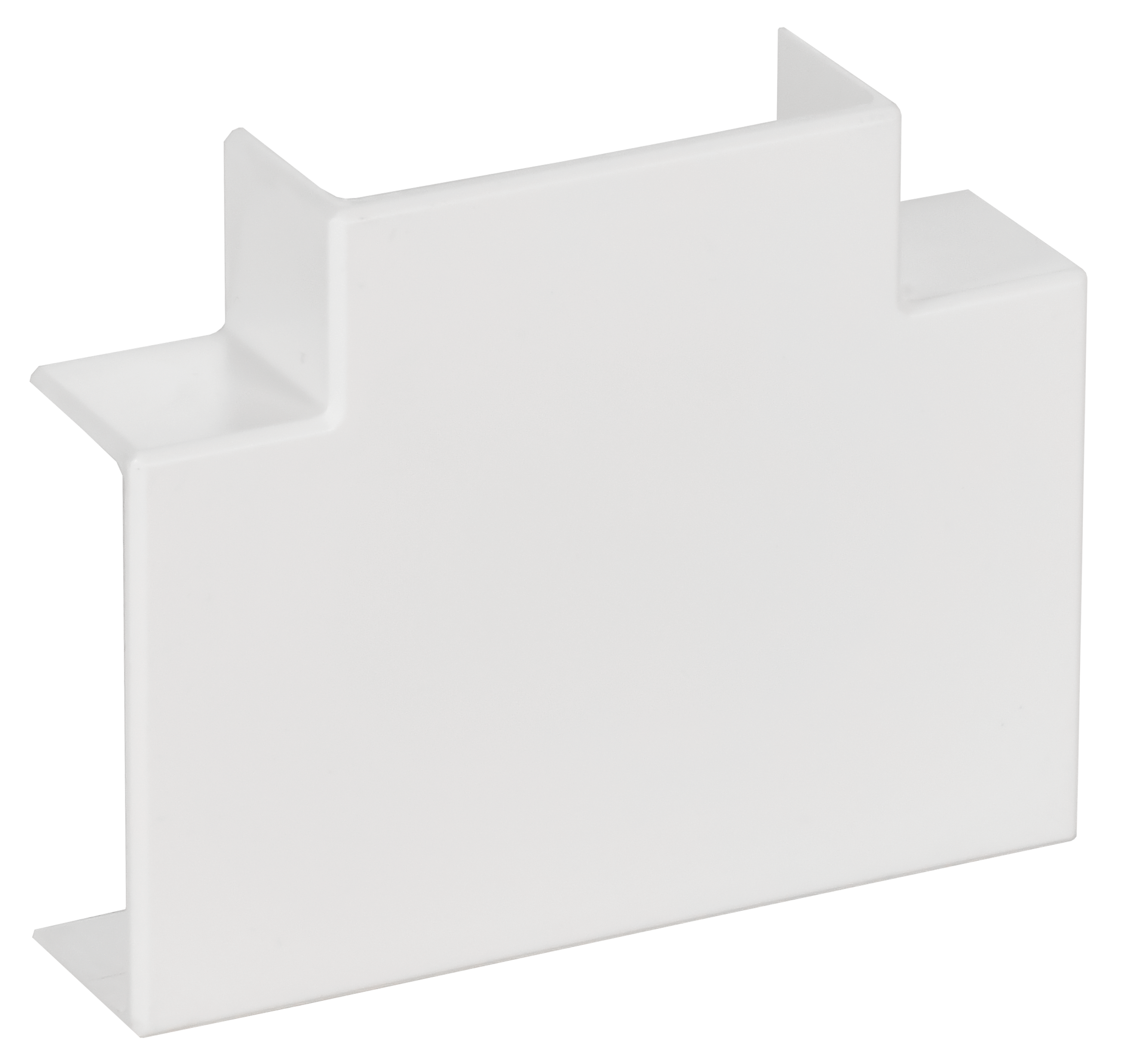 Угол Т-образный позволяет выполнить Т-образное соединение двух кабель-каналов, обеспечивает степень защиты всей системы IP40, улучшает внешний вид, закрывая место разреза. Т-образный угол закрепляется на корпусе кабель-канала простым защелкиванием. Цвет: белый.