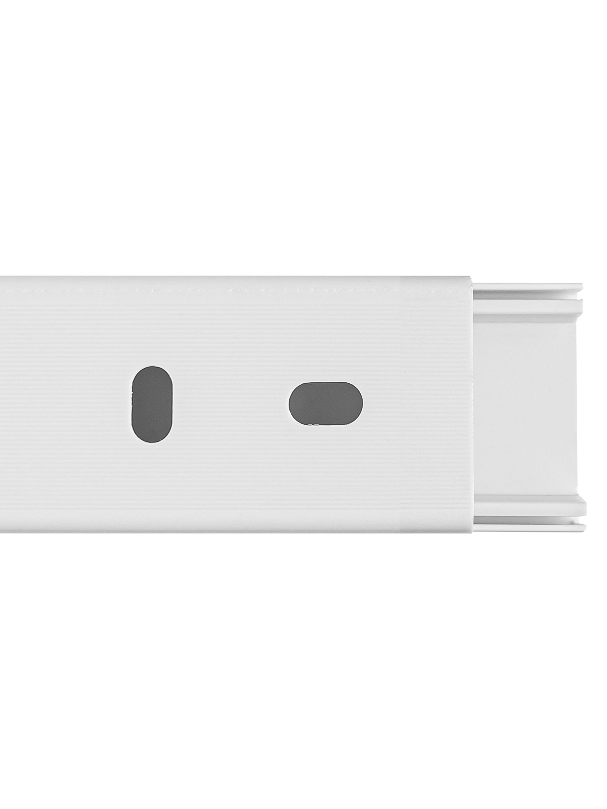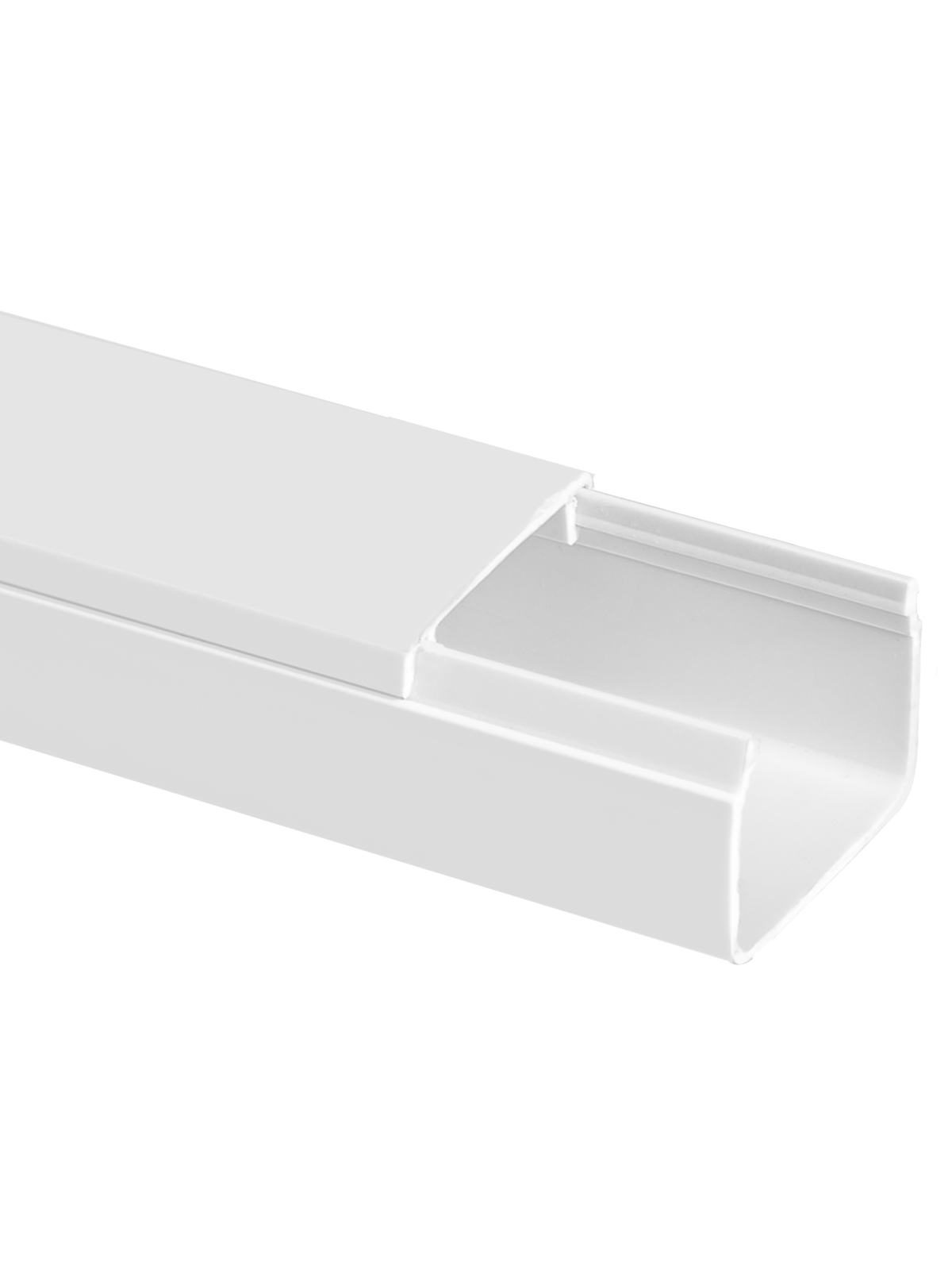 Кабель-канал магистральный с крышкой с двойным замком. Предназначен для эстетичной прокладки кабелей и проводов, быстрого доступа к проводке, защиты проводки от механических повреждений и обеспечения электробезопасности. Выпускается в отрезках длиной 2 метра с перфорацией на основании. Материал - cамозатухающий ПВХ. Цвет белый.