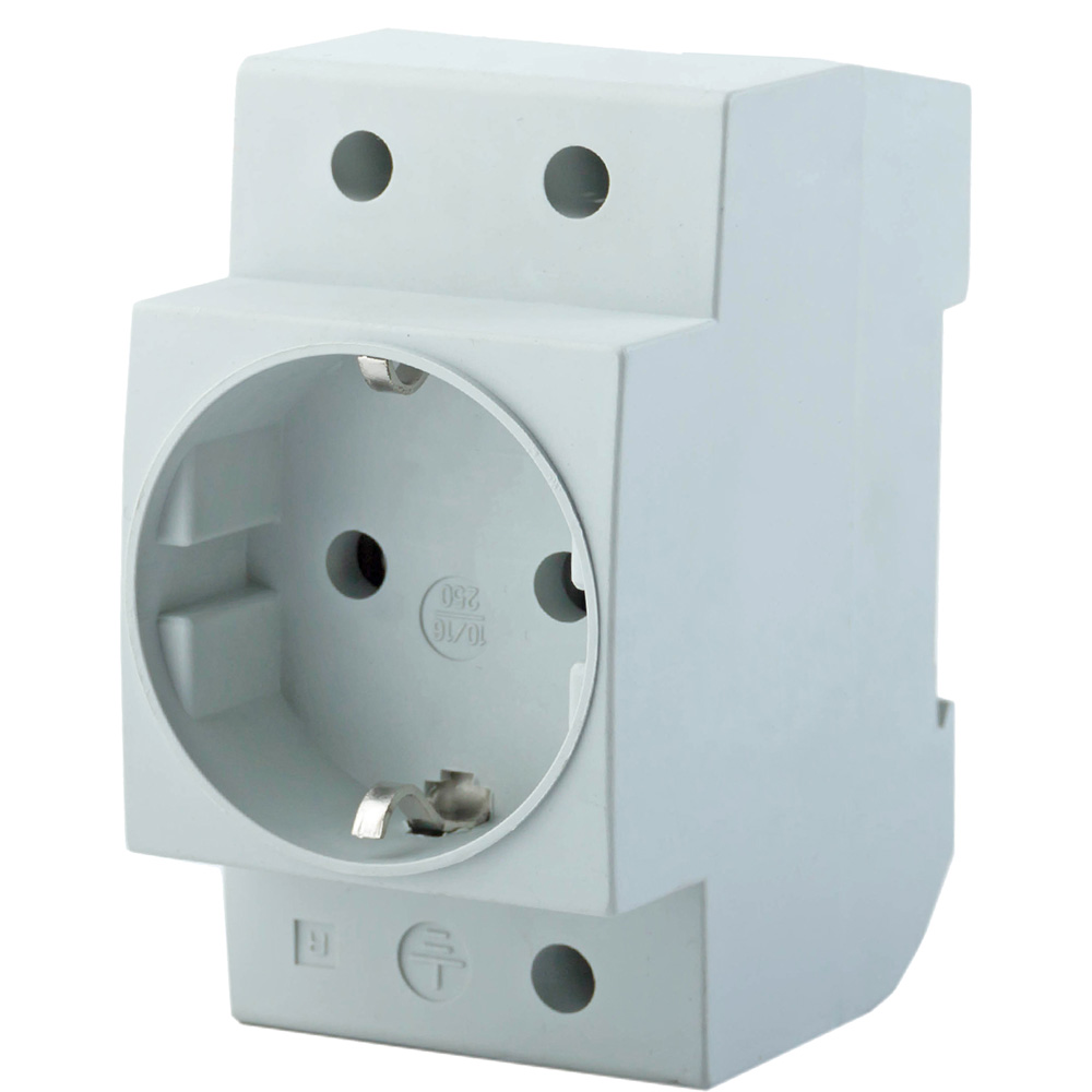 Розетка модульная предназначена для установки на DIN-рейку в распределительный щит. Служит для подключения переносного светильника или электрического инструмента малой мощности во время профилактических и ремонтных работ. Розетка монтируется вертикально на DINрейку, имеет заземляющий контакт. Корпус розетки изготовлен из пластмассы, не поддерживающей горение, что обеспечивает безопасность эксплуатации продукта.