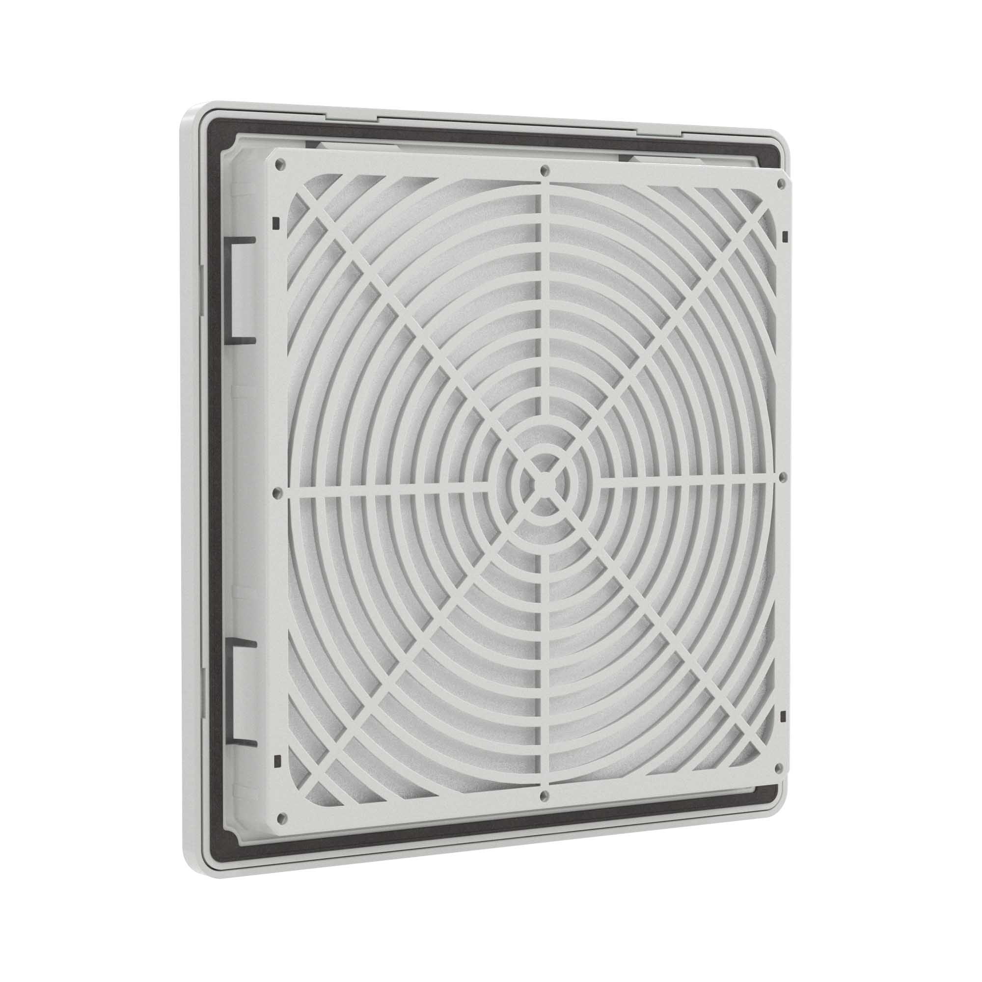 Вентиляционные решетки RF изготовлены в России. Они обладают высоким качеством и надежностью, могут применяться даже в тяжелых условиях эксплуатации. Изготовлены из устойчивого к УФ и не поддерживающего горение АБС-пластика и поликарбоната. Возможна установка на улице без навеса. Степень защиты IP54, опционально повышение до IP56. Применяются для создания пассивной вентиляции или в сочетании с настенными или потолочными вентиляторами. Монтаж осуществляется без использования инструмента при помощи защелок (опционально можно зафиксировать винтами, например, при вибрационных нагрузках). В комплекте - воздушный фильтр с возможностью быстрой замены без инструмента. Внешние размеры 205х205 мм, размер монтажного выреза 177,5х177,5 мм. Цвет - светло-серый, RAL 7035.