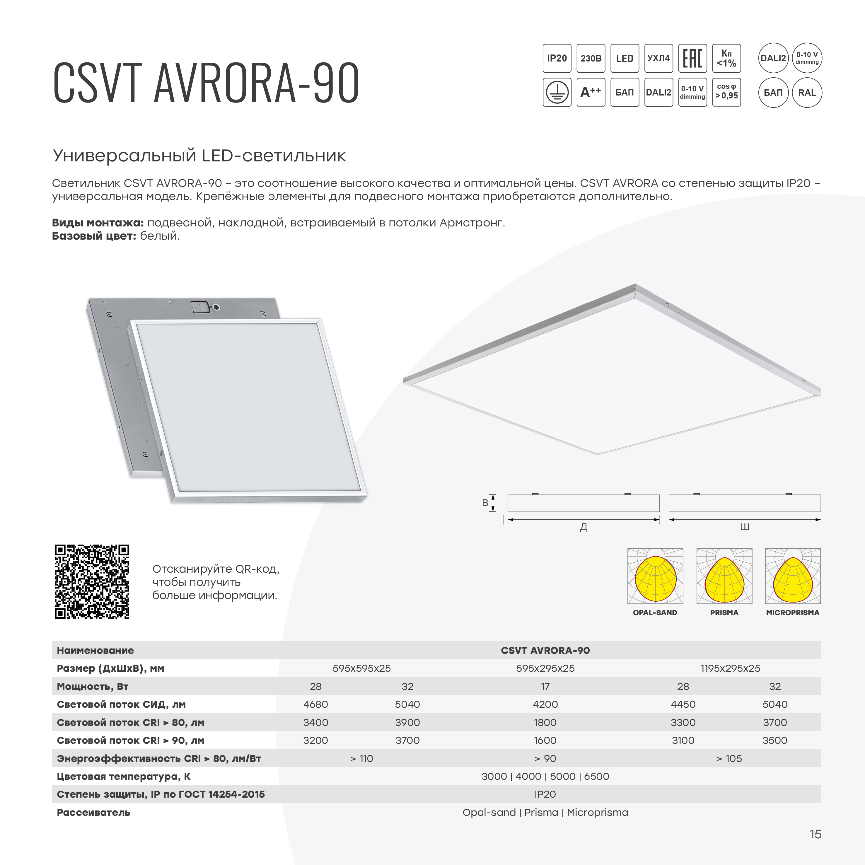Светильник AVRORA 90-32/microprisma 595х595 IP20 4000К CRI90