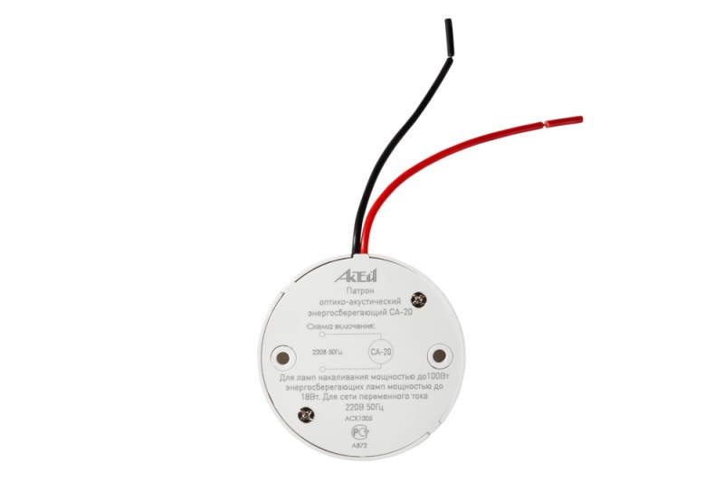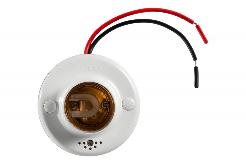 Возможность использования совместно с ЛН, КЛЛ и LED с цоколем Е27. Оснащен оптико-акустическим датчиком. Корпус выполнен из огнестойкого (flame retardant) поликарбоната.
