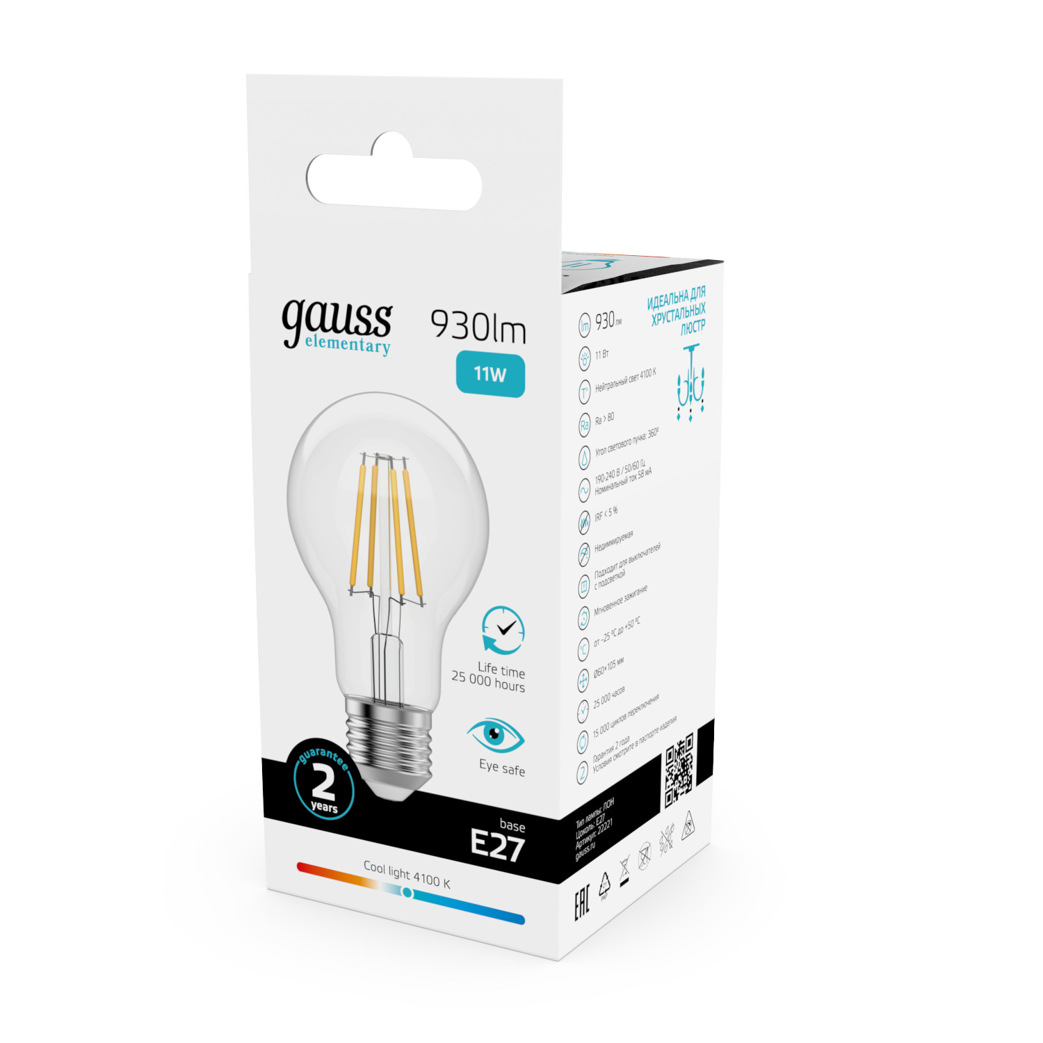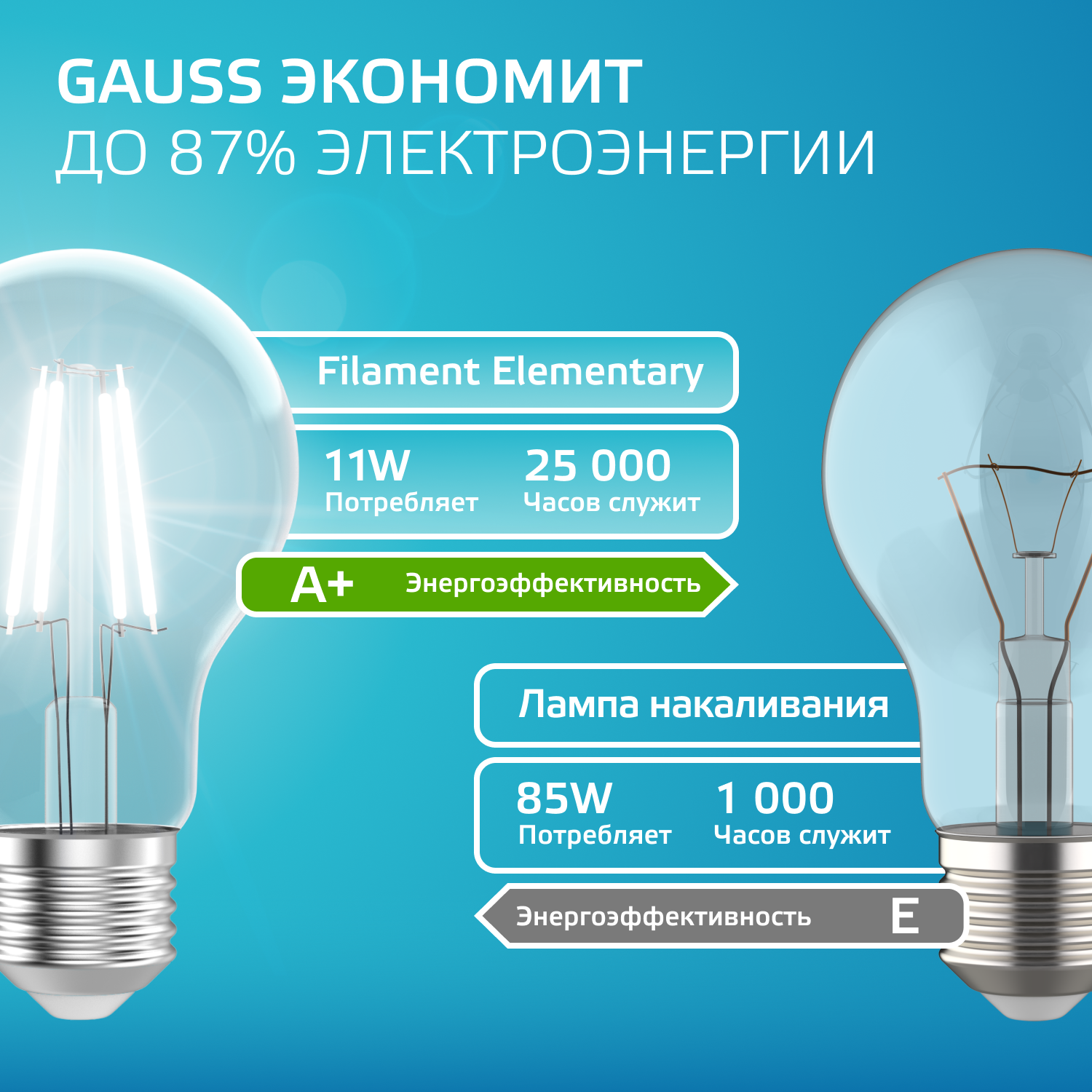Светодиодные филаментные лампы GAUSS - это новейшие технологии в светотехнике. Лампы имеют привычный вид классических ламп накаливания, освещают пространство на 360 градусов и дают больше света по сравнению с обычными светодиодными лампами за счет прозрачной колбы. Идеально подходят для хрустальных люстр и открытых светильников, а также для реализации дизайнерских решений, где важен вид классических ламп накаливания.