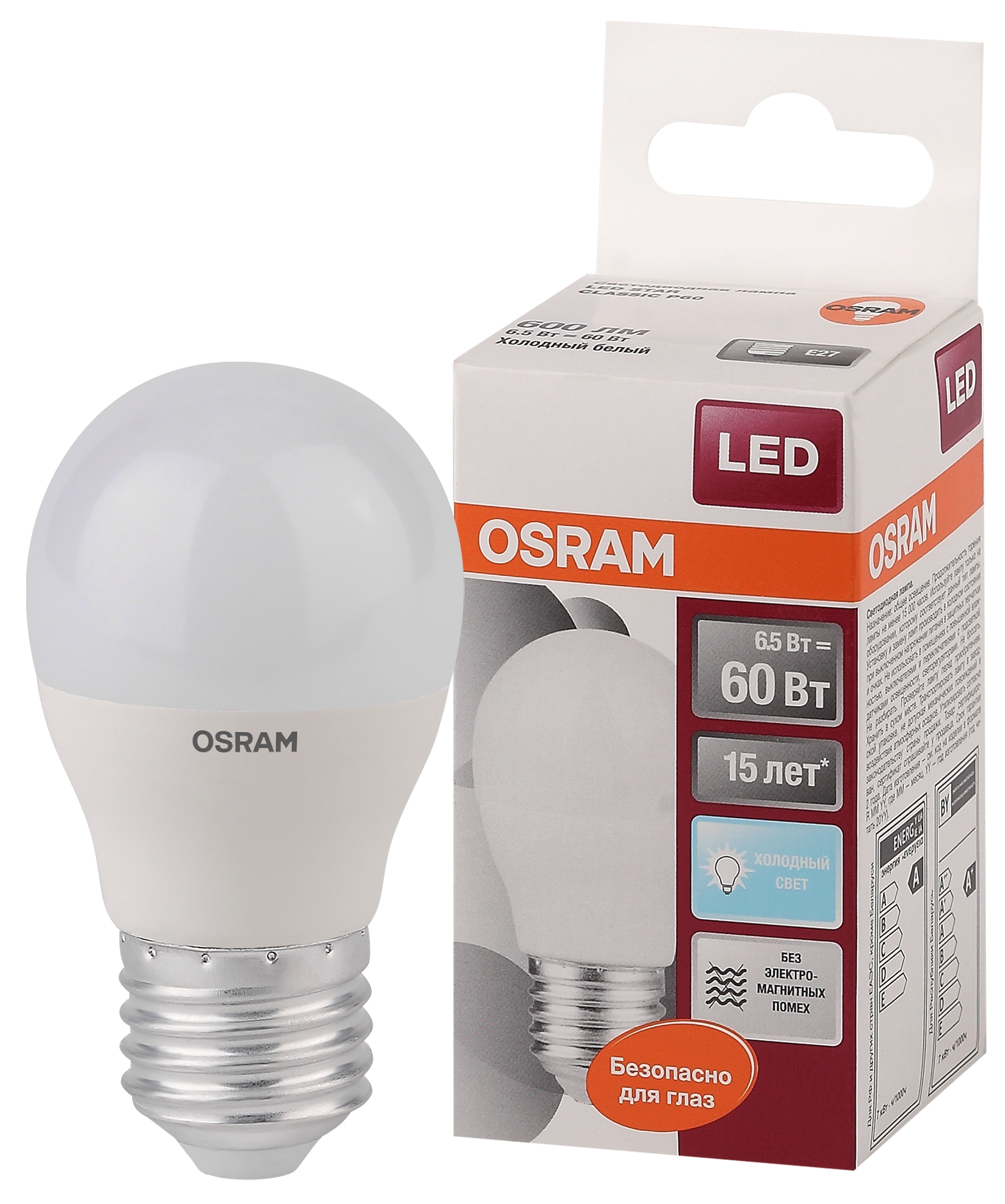 Лампа светодиодная LED 6,5Вт Е27 STAR ClassicP (замена 60Вт),нейтральный белый свет, матовая колба Osram