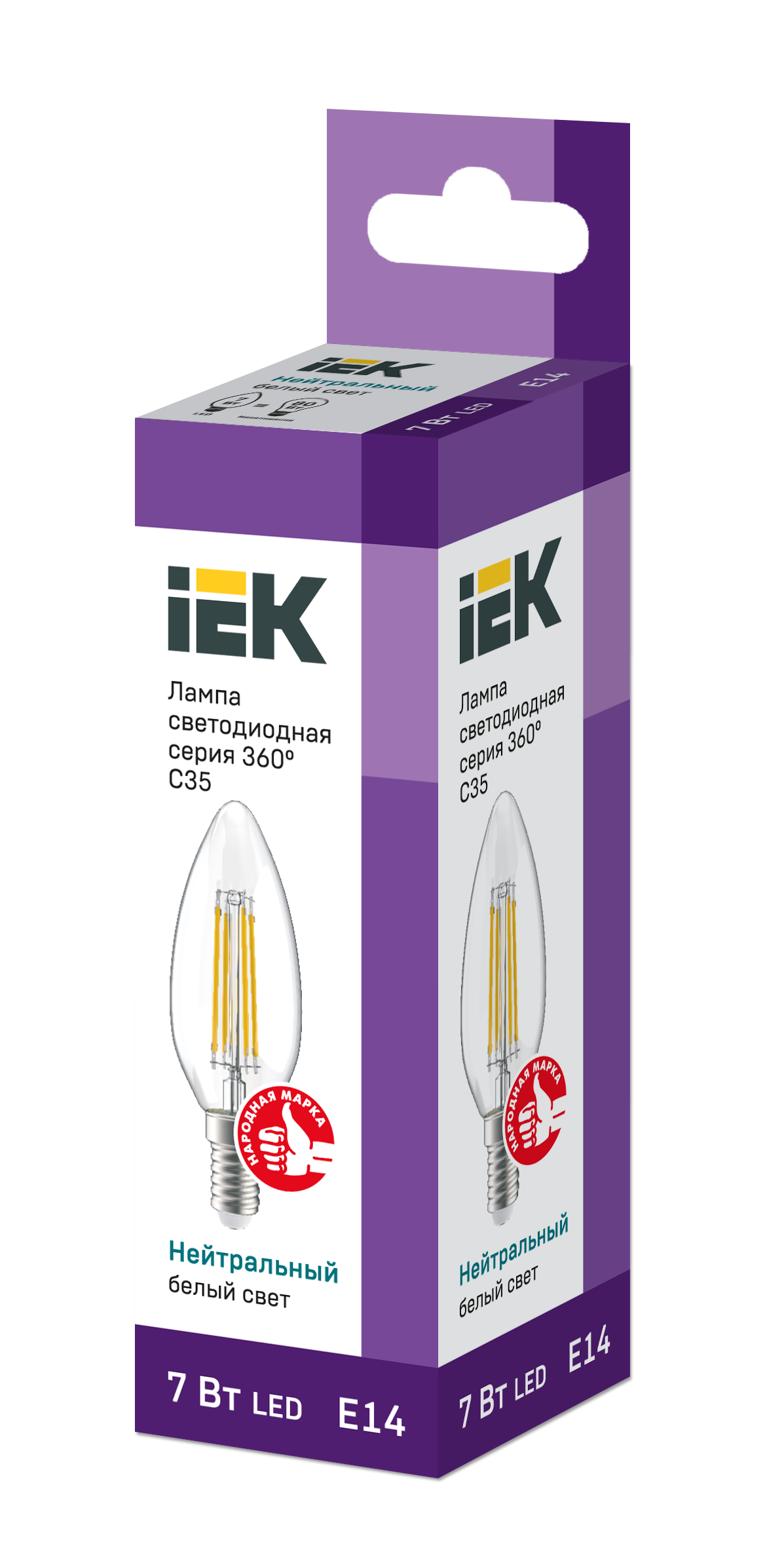 Лампа LED C35 свеча прозр. 7Вт 230В 4000К E14 серия 360° IEK с нитевидным светодиодом (филаментная нить) является одним из самых эффективных источников света. Главное отличие от обычных светодиодных ламп – угол рассеивания света до 360° (дополнительный комфорт для глаз). Лампа применяется в осветительных приборах бытового назначения. Представлены в 3 вариантах: с прозрачной, золоченой и матовой колбами. Соответствуют требованиям Технических регламентов Таможенного союза ТР ТС 004/2011, ТР ТС 020/2011, МЭК 62560 и постановления Правительства РФ от 10.11.2017 № 1356.