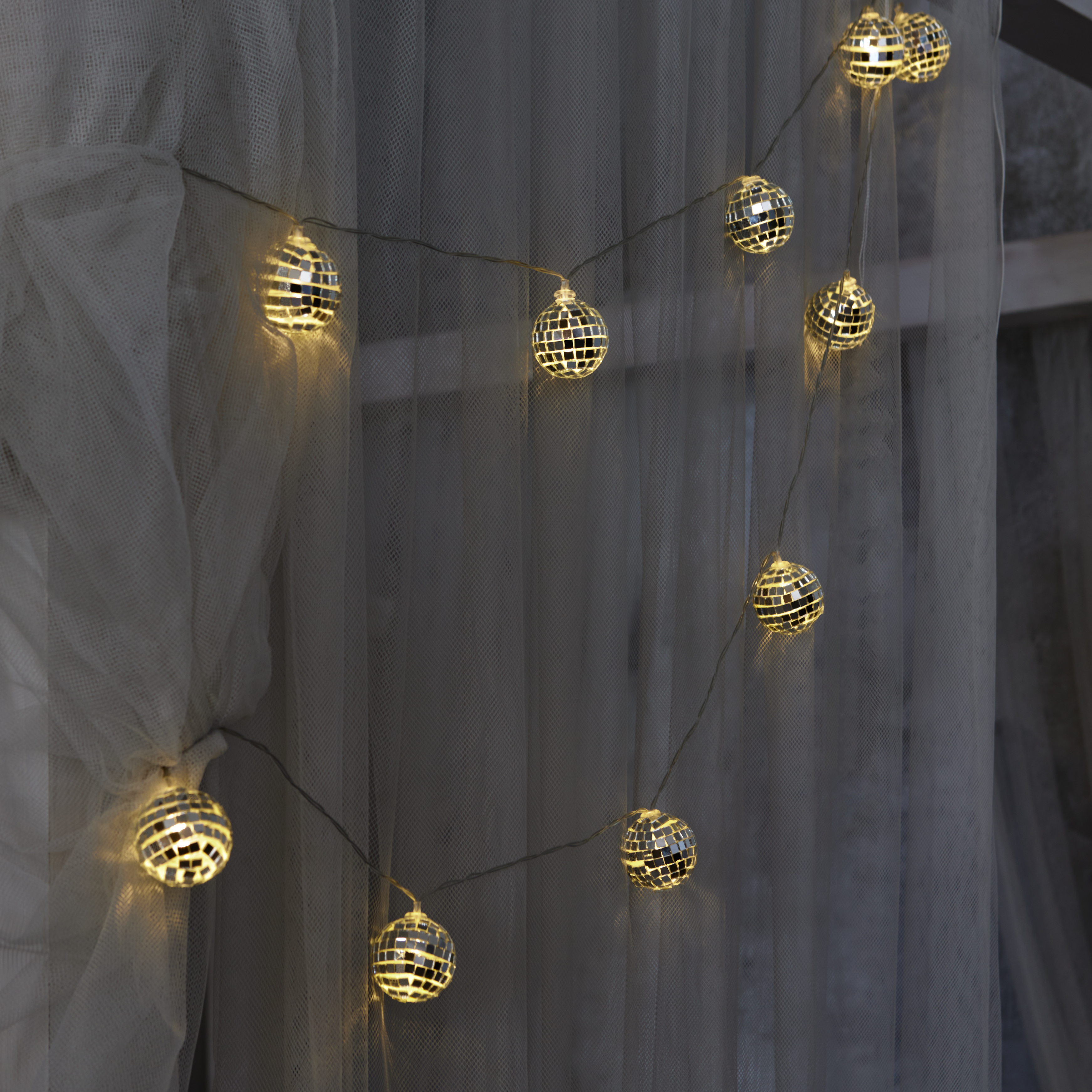 Гирлянда светодиодная диско на батарейках. Гирлянда с теплым белым свечением, незаменима для декоративной подсветки и украшения интерьера, легко монтируется. Светодиодная гирлянда длиной 1,8 метра, имеет 10 светодиодов, диаметром 4 сантиметров, предназначена для использования в помещениях. Отличительной особенностью гирлянды является превосходная яркость и низкое энергопотребление. Сетевой кабель длиной 0,3 метра. Цвет провода - прозрачный. Поставляется в картонной упаковке. Срок службы составляет 30000 часов. Гарантия производителя 12 месяцев. Элемент питания три батарейки типа АА, в комплект не входят.