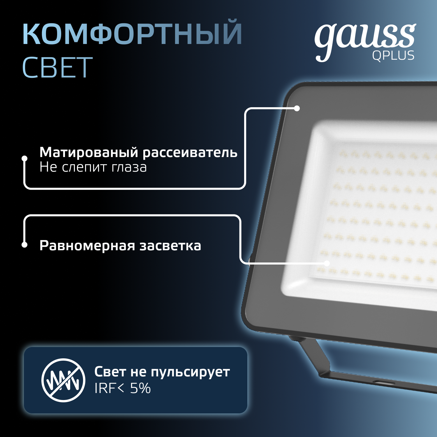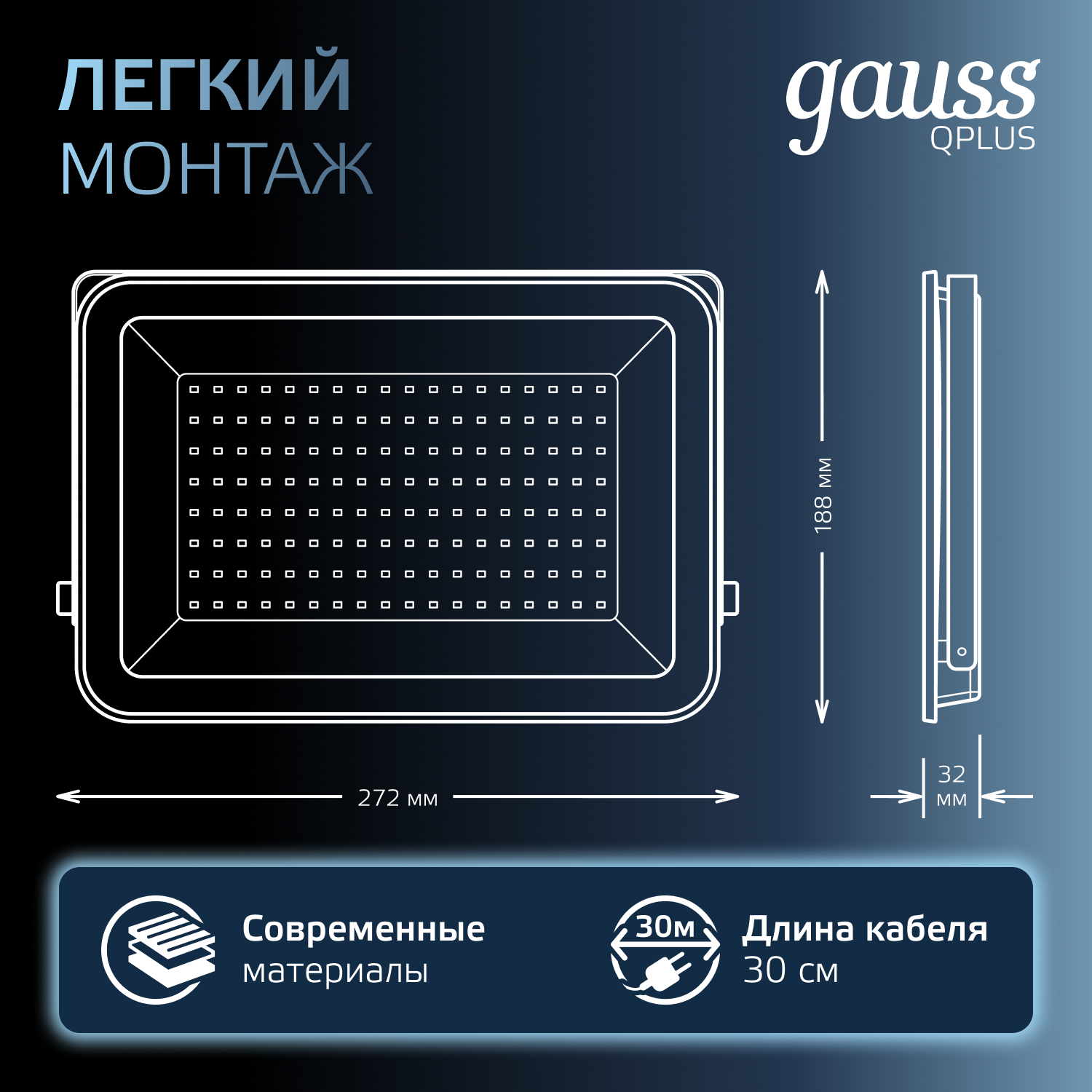 Прожектор светодиодный ДО 100 Вт 12000 лм 6500К AC 220В IP65 210х32х283мм матрированное закаленное стекло Qplus Gauss
