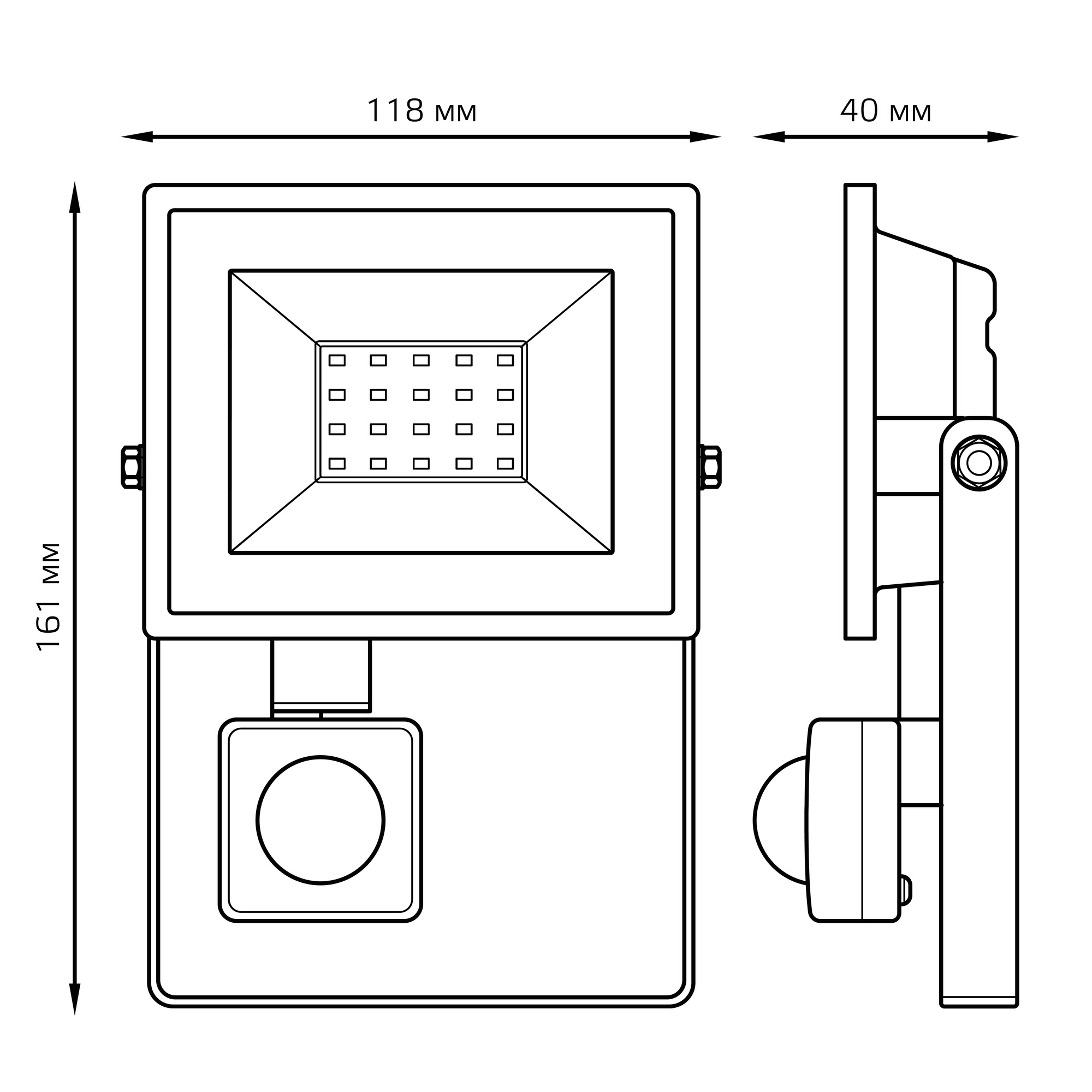 Прожектор светодиодный ДО 20 Вт 1900 лм 6500К AC 220В Черный IP65 161х118х40мм с датчиком движения Elementary-S Gauss