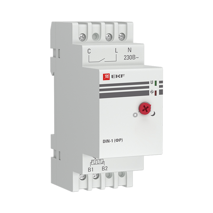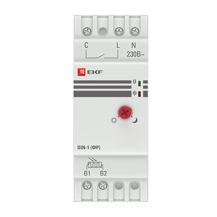 Фотореле серии DIN-1 (ФР) предназначены для автоматического контроля (включения или отключения) освещения в зависимости от уровня освещенности. Включение - при снижении освещенности (сумерки) и отключение - при увеличении освещенности (рассвет). Порог срабатывания может быть изменен с помощью регулятора на передней панели (от 2Лк до 100Лк). Преимущества:1. Датчик в комплекте2. Максимальный ток нагрузки, 25А3. Широкий диапазон регулировки освещенности4. Модульное исполнение на DIN-рейку.