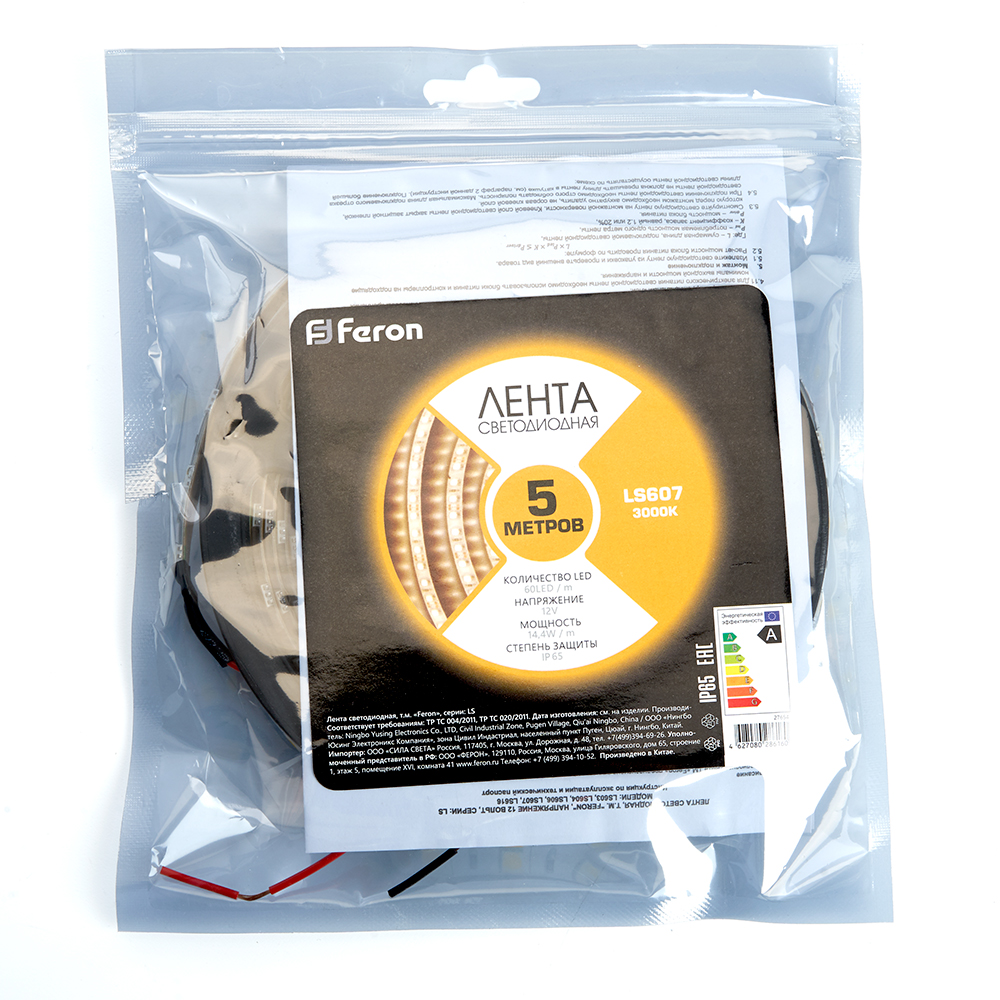 Питаясь от всего 12 вольт, лента потребляет всего 14,4 ватт мощности на метр, что делает ее экономичной и энергоэффективной. Цветовая температура в 3000К создает теплый белый свет. С защитным классом IP65, лента защищена от пыли и воды, что делает ее идеальным решением для использования внутри или снаружи помещений. Лента имеет длину 5 метров и содержит 60 светодиодов на метр, что позволяет вам легко настроить и приспособить ее к любым потребностям. Она обеспечит более яркое, экономичное и долговечное освещение, а гарантия на 2 года дает уверенность в продукции. С одного конца без потери яркости можно запитать отрезок ленты длиною в 5 метров.