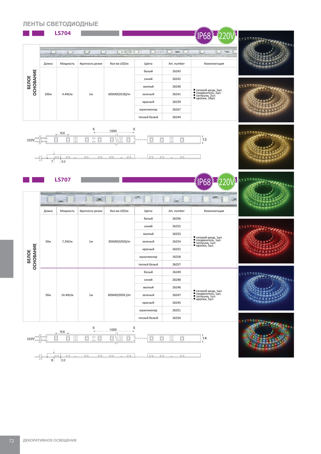 Светодиодная лента LS704 60SMD(2835)/м с цветовой температурой 2700К создает теплое приятное освещение в любом помещении. Лента имеет мощность 4.4 Вт/м и напряжение работы 220В, обеспечивая низкий уровень энергопотребления. Благодаря классу защиты IP65 она защищена от воздействия влаги и пыли, поэтому подходит как для использования внутри, так и снаружи помещений. Благодаря своей длине в 100 метров она может быть использована для декорирования больших площадей, таких как архитектурные сооружения, рекламные конструкции, спортивные комплексы и т.д.