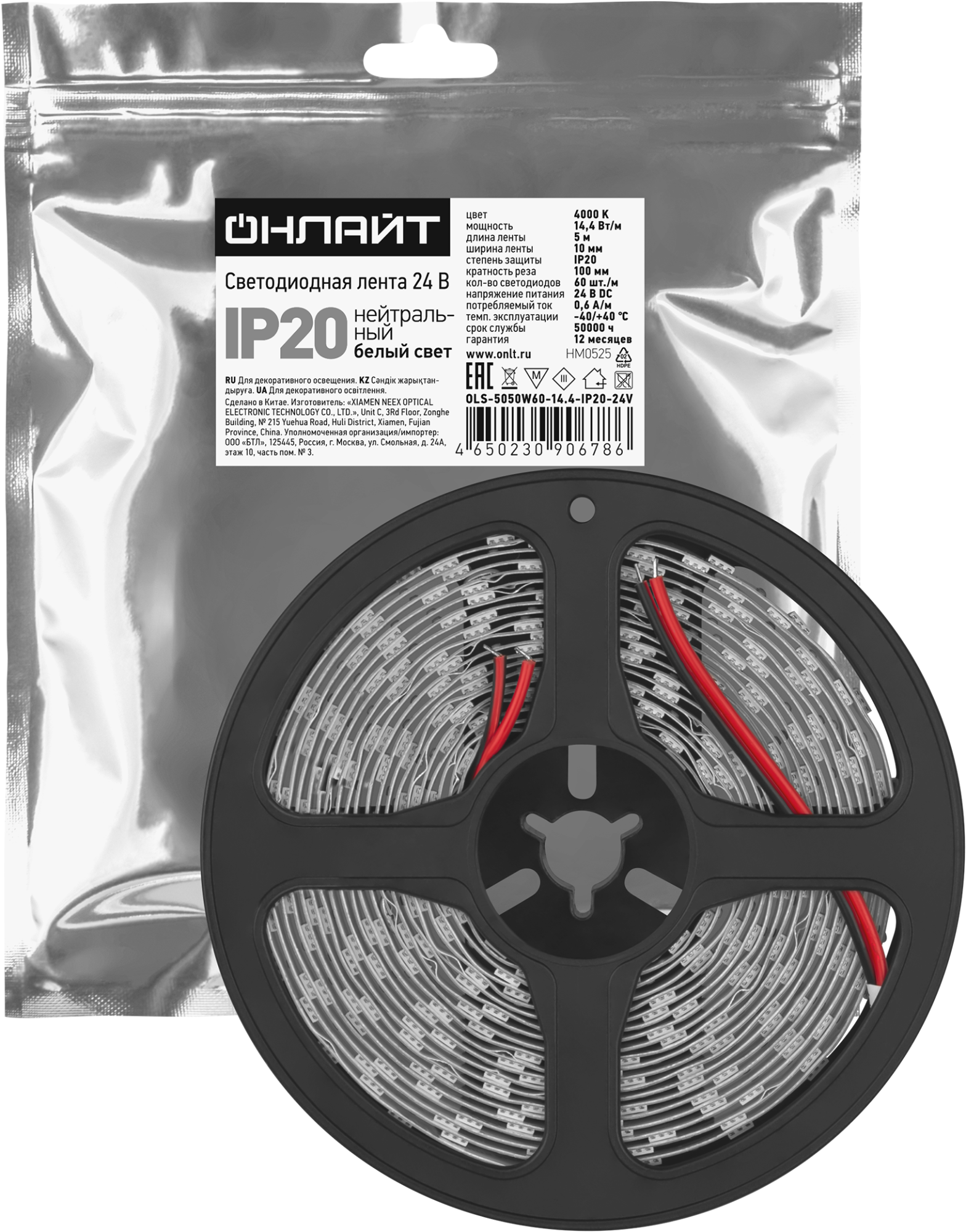 Лента светодиодная 14.4Вт/м 24В 4000К IP20 60 LED/м OLS-5050 5м