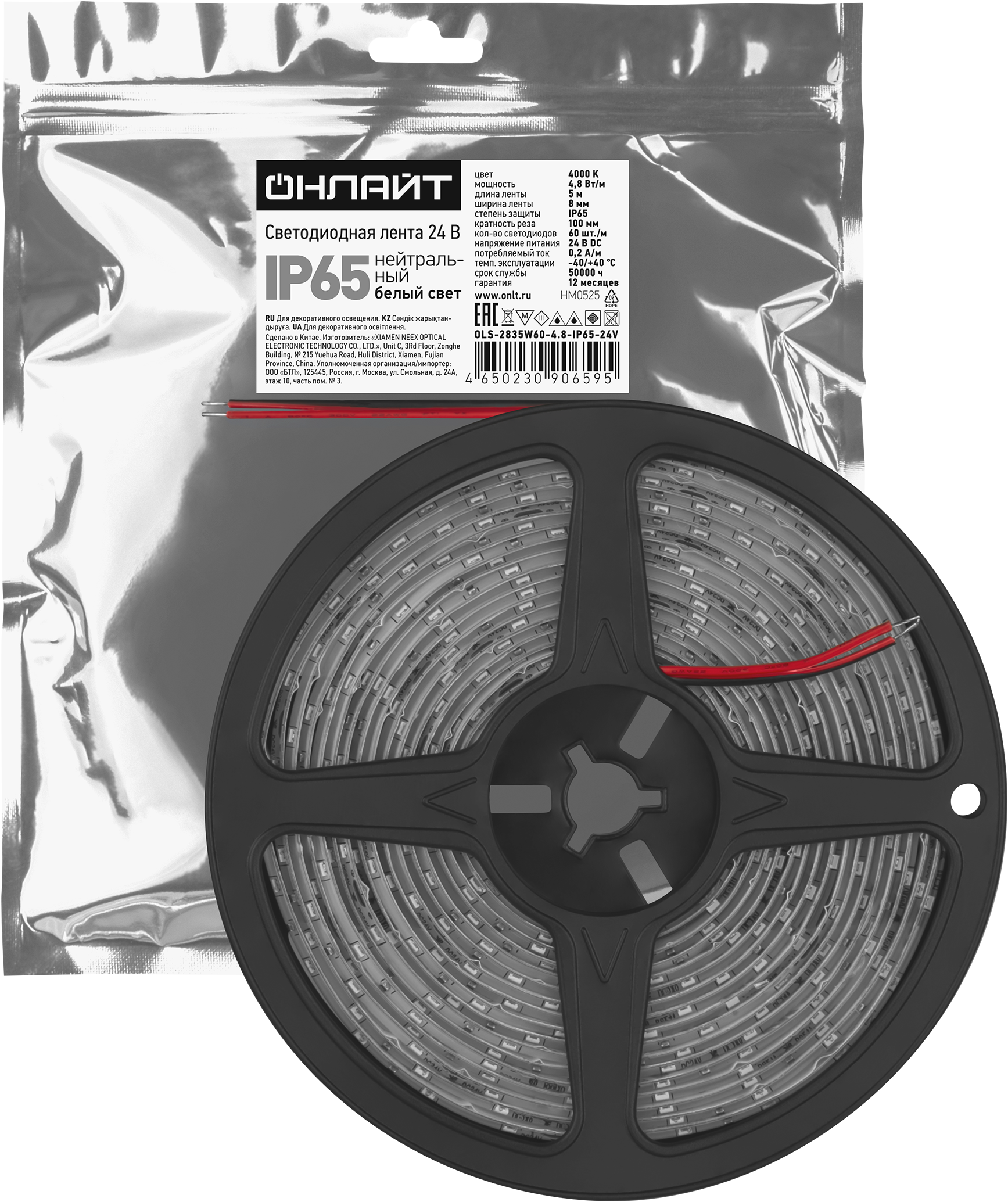 Лента светодиодная 4.8Вт/м 24В 4000К IP65 60 LED/м OLS-2835 5м