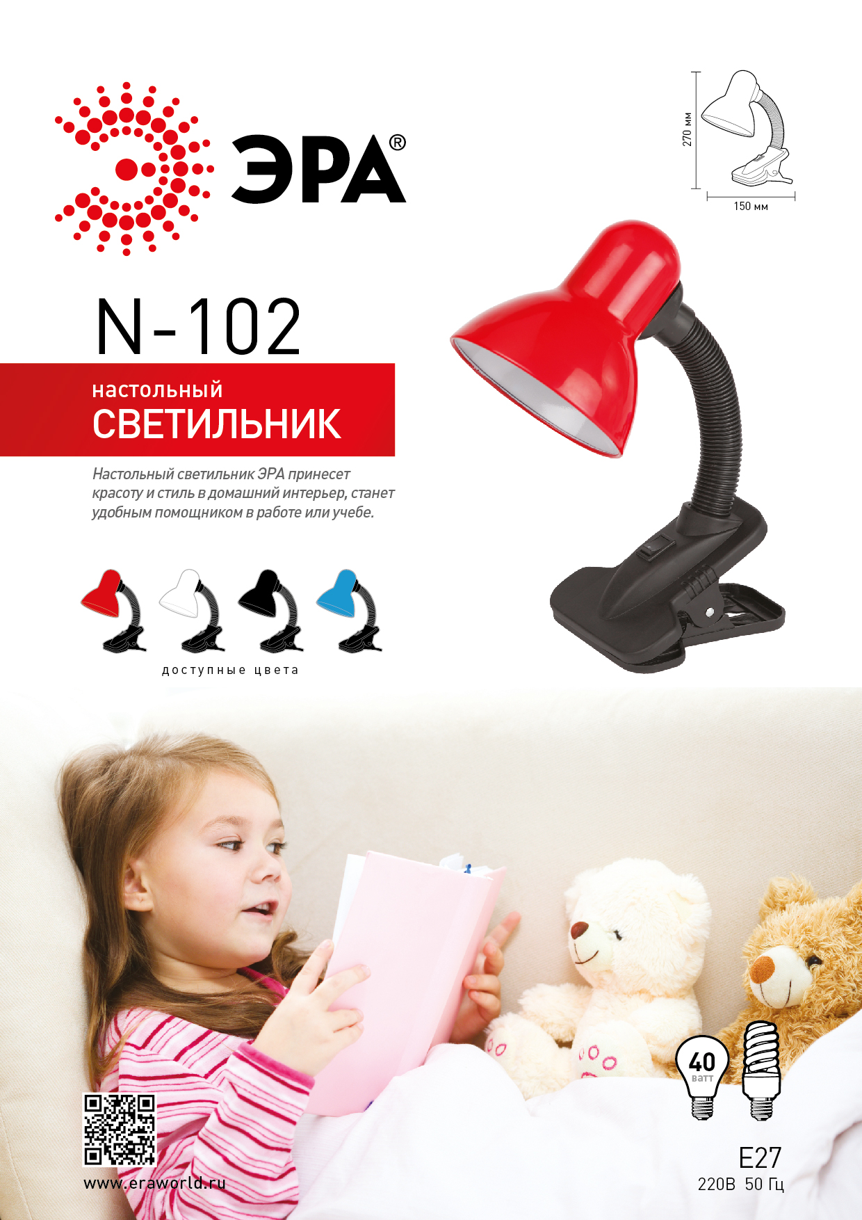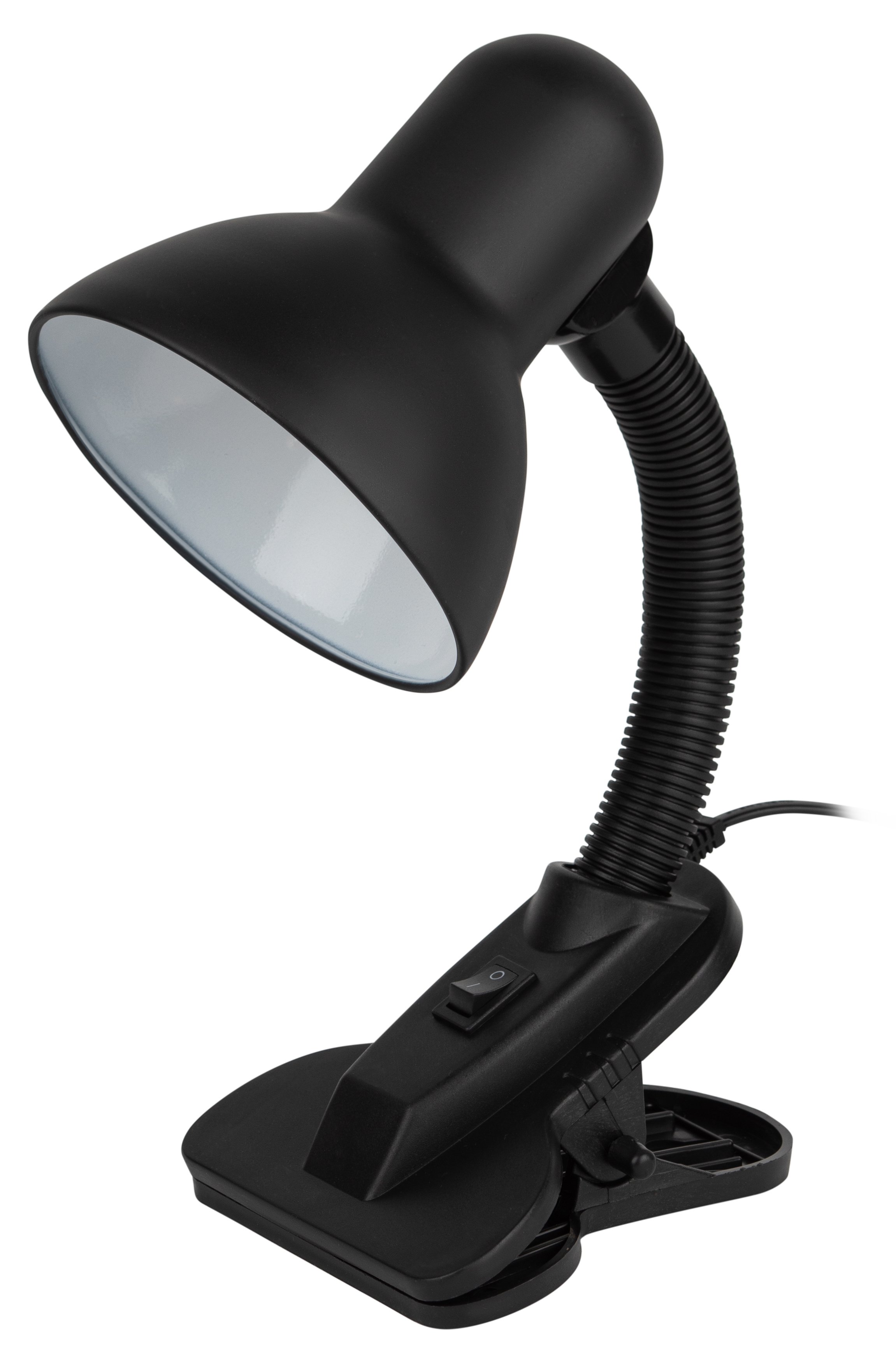 Металлический плафон. Направление света регулируется гибкой стойкой, которая обеспечивает наклон и поворот плафона в любом направлении. Выключатель на прищепке. Классический дизайн.Предназначен для использования с лампой накаливания или компактной люминесцентной лампой (КЛЛ): максимальная мощность 40W, цоколь E27, 220V 50HZ, лампа в комплект не входит.
