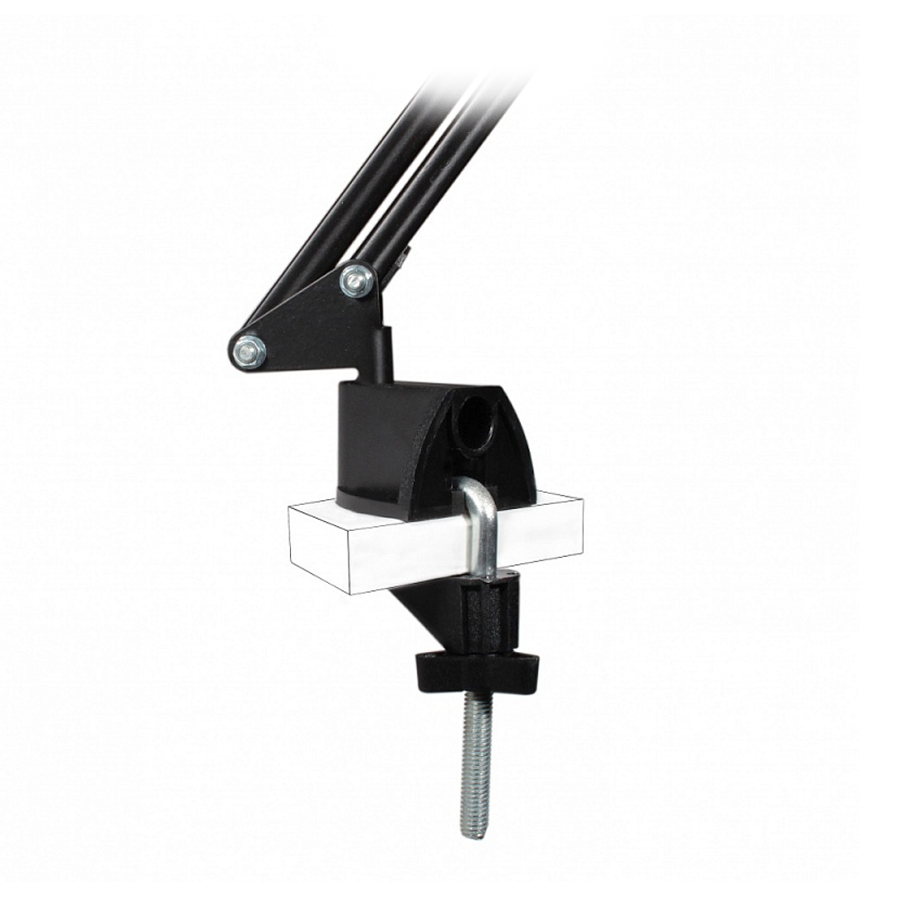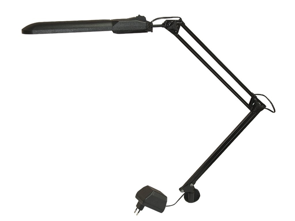 Светильник с патроном G23 для использования с КЛЛ. Светильник с дросселем (адаптер в электрическую розетку) . Вытянутая голова светильника имеет множество степеней свободы. Светильник на двухзвенном пантографе, что очень удобно для расположения плафона в определённом положении на разных высотах. Варианты использования: в учебных, медицинских, жилых и офисных помещениях.