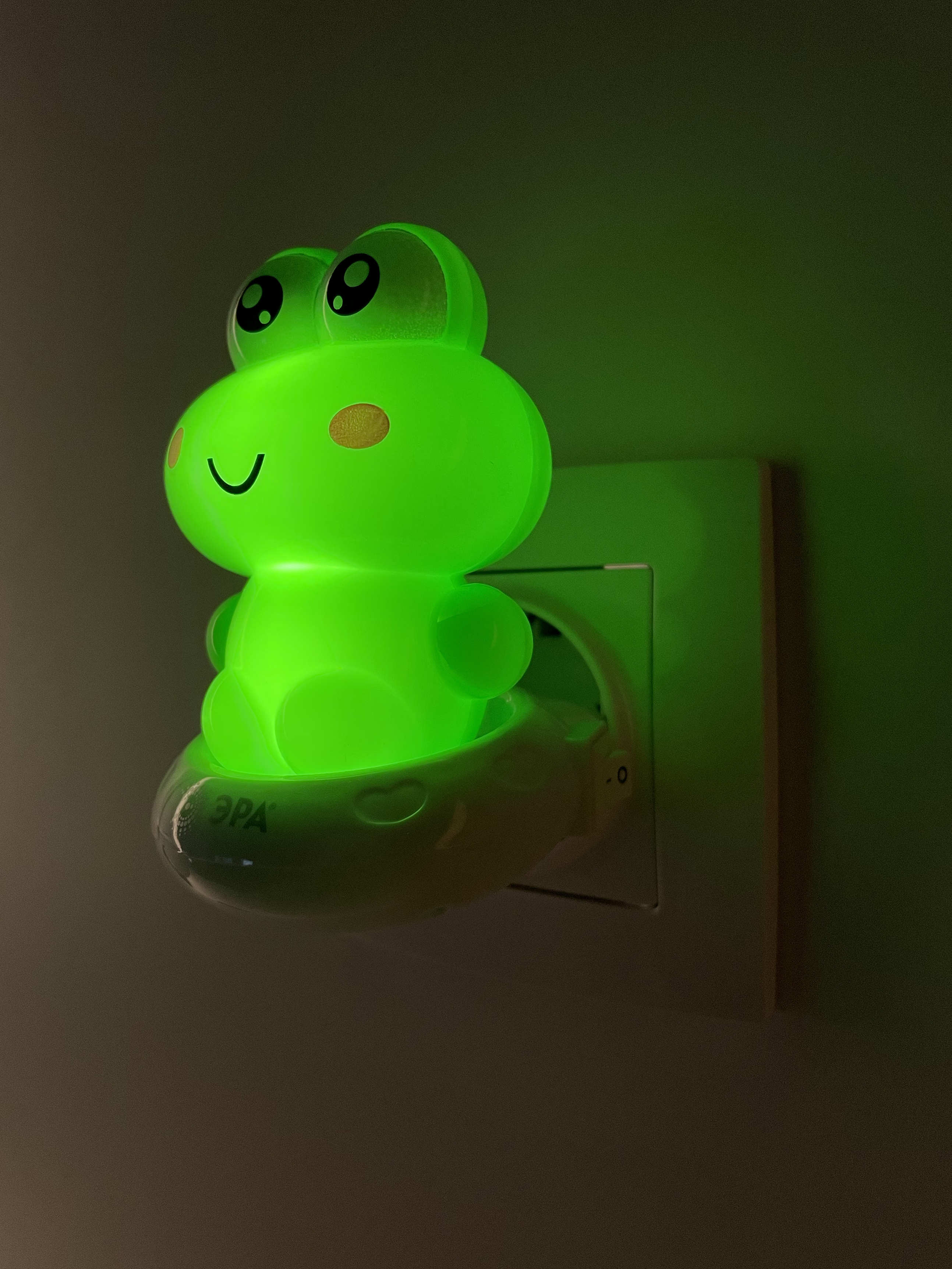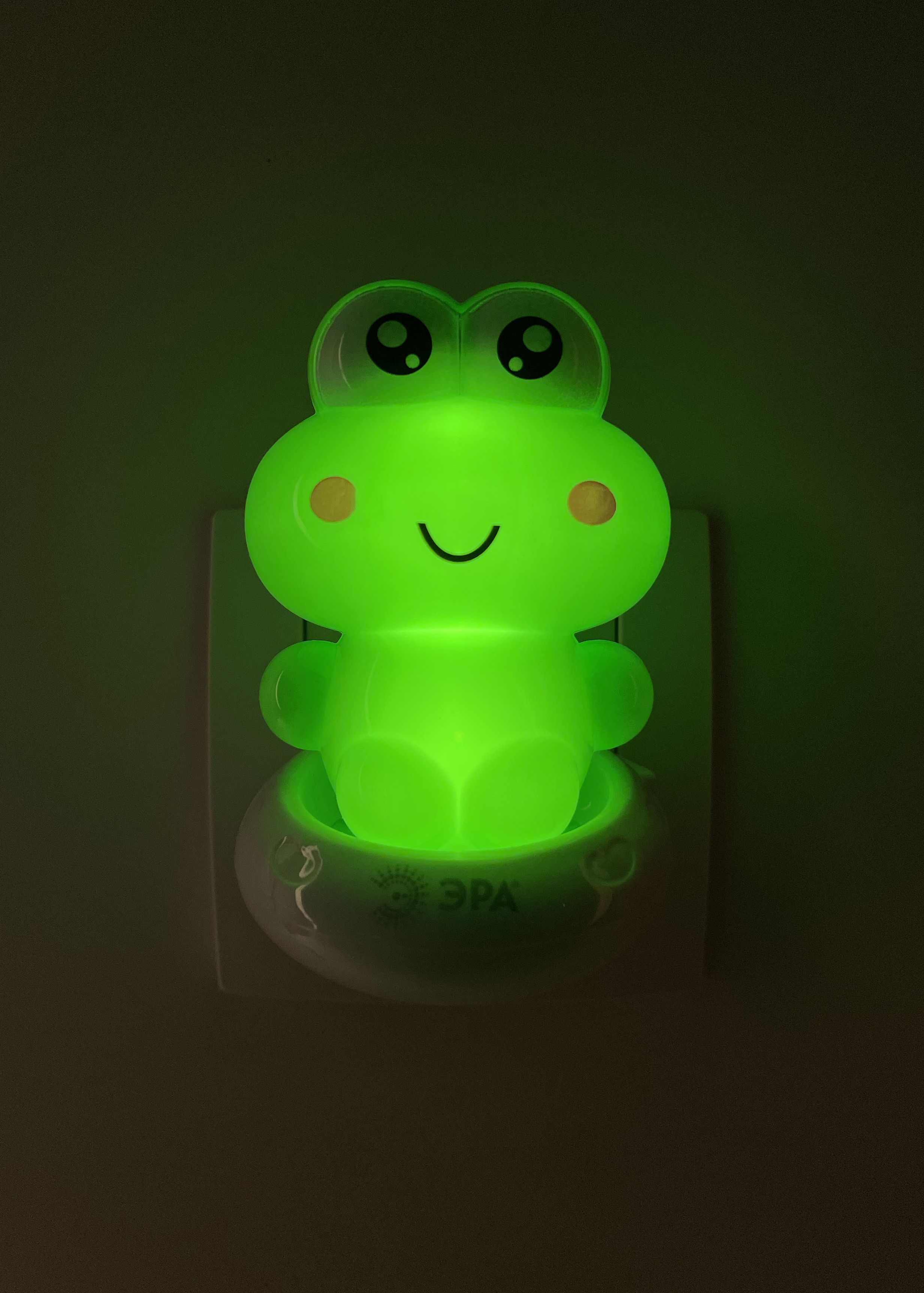 Ночник NN-608-SW-GR `Лягушонок` со светодиодами (LED) в качестве источников света. С выключателем. Среди множества вариантов ночников миниатюрные модели, вставляющиеся в розетку - одни из самых удобных. Светодиодные ночники ЭРА успешно выполняют свою основную функцию - создают мягкий рассеянный свет. Они отличаются мизерным энергопотреблением, которое будет незаметно в общем счете за электроэнергию. При необходимости можно смело оставлять их включенными ночи напролет. Современная LED технология исключает пульсации света, освещение ровное и приглушенное - то, что нужно для комфортного сна или ночной подсветки.