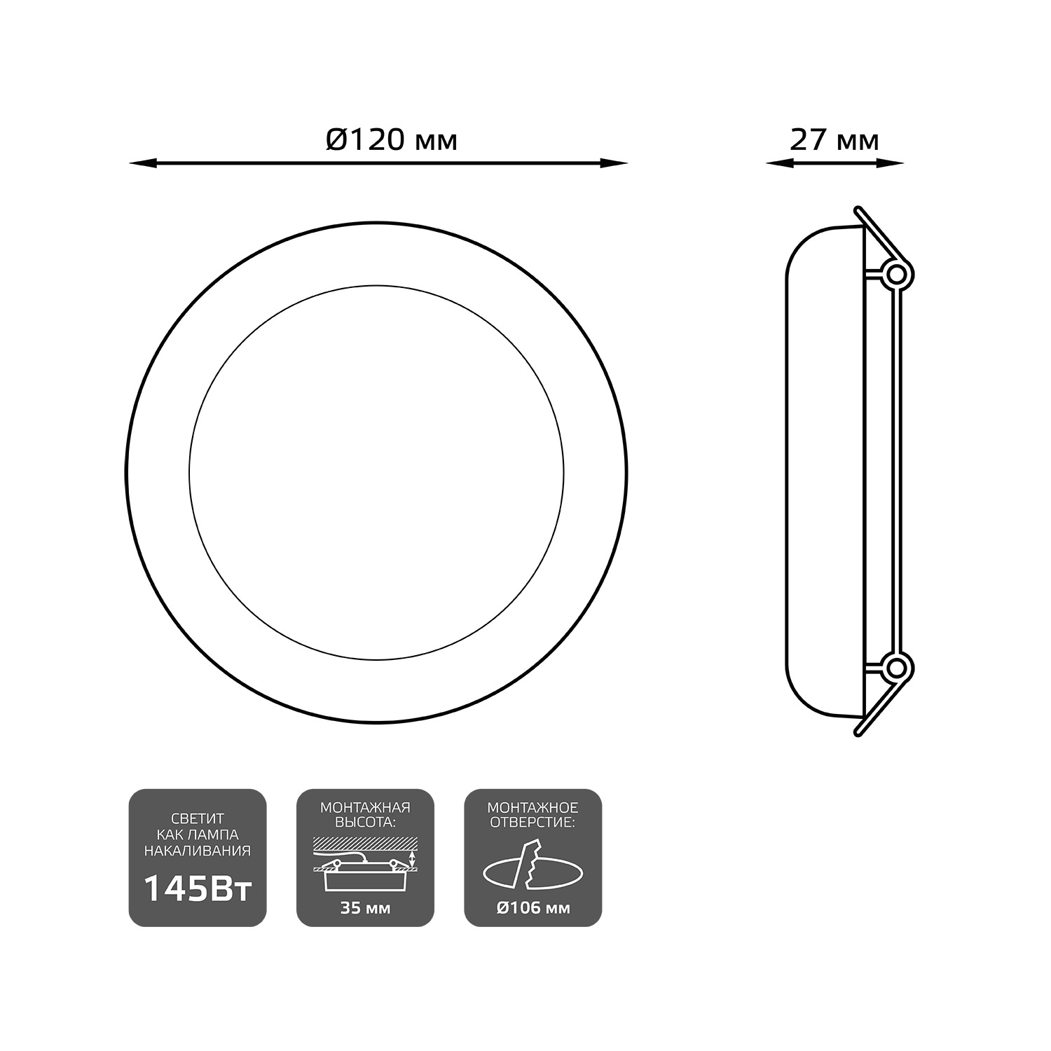 Светильник светодиодный ДВО 18 Вт 1800 лм 4000К AC 220В IP20 круг D120х27мм монт d106мм Пластик безрамочный Frameless Gauss