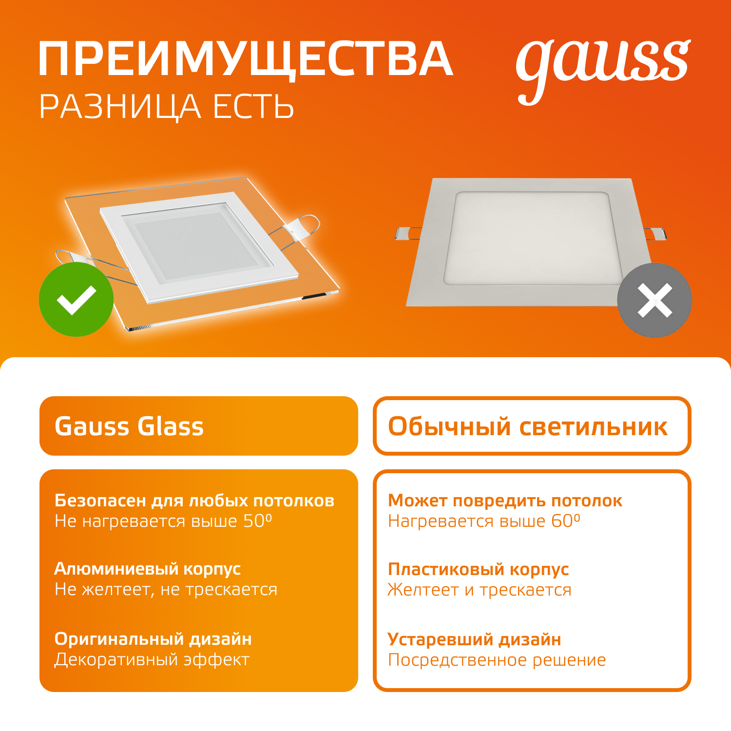 Светильники с декоративным стеклом от Gauss обеспечивают комфортное и экономичное освещение в помещениях разного назначения. Такие потолочные светодиодные светильники обладают лаконичным дизайном и компактными размерами, поэтому гармонично впишутся в любой интерьер. Эти осветительные приборы можно использовать при монтаже любых натяжных конструкций, создавая желаемую атмосферу в помещении. Светильники с декоративным стеклом от Gauss идеально подходят в качестве дополнительного или акцентного освещения на кухнях, в гостиных, санузлах, для выделения объектов на витринах магазинов, в кафе или других коммерческих учреждениях. При создании разноуровневых конструкций с точечным светодиодным освещением можно визуально увеличить пространство в помещении, создать нужную атмосферу для работы или отдыха.